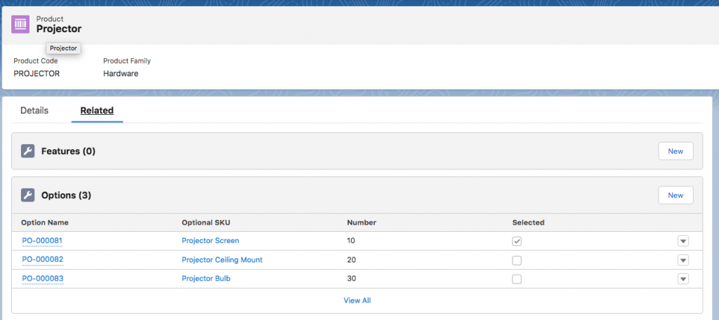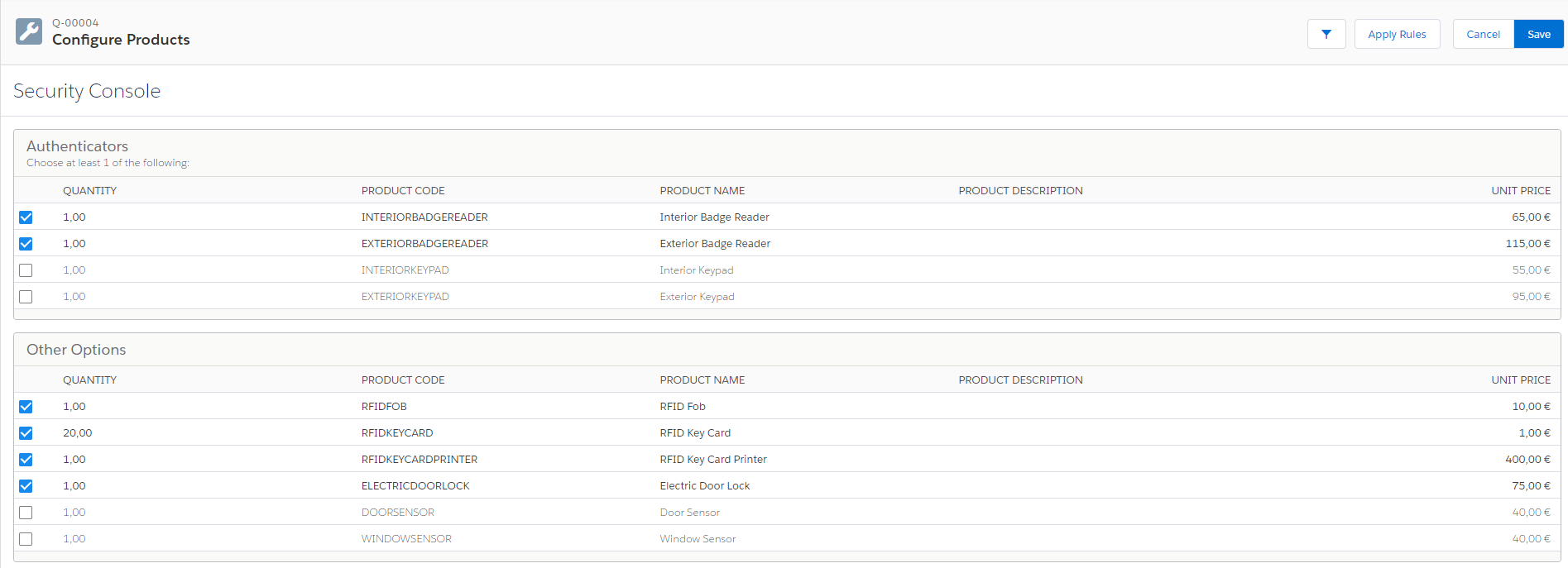 Result in Quotes product configuration (e.g.: Feature = „Authenticators“, „Other Options“= without Feature)