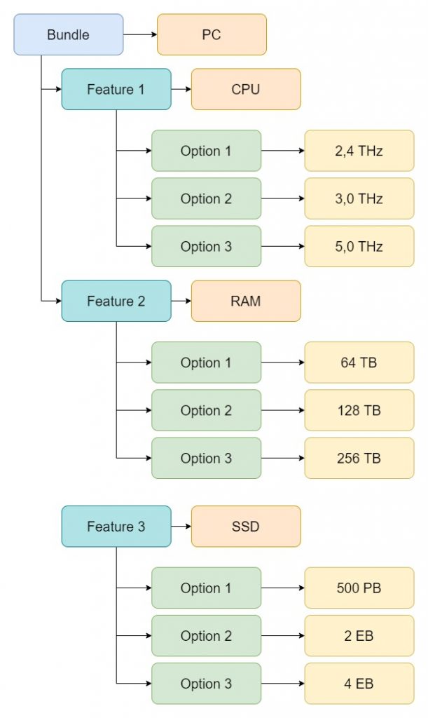 - Component: fixed part of the bundle – quantity per bundle fixed
